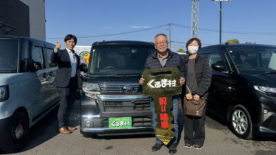 この度はタントカスタムご成約いただき誠にありがとうございます。 今回は増車のご検討でご来店をいただきました。 数ある車両の中からお選びいただいたのがこちらの1台でした。 非常に条件の良いこちらの1台をお喜びいただきました。 お客様のカーライフを精一杯サポートさせていただきますので 今後とも末永いお付き合い、宜しくお願い致します。