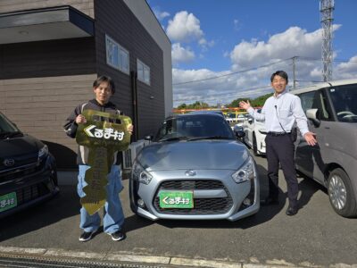 この度はコペンのご契約を頂きまして、誠にありがとうございます。 今回は初めてのお車をご検討でご来店いただきました。 数あるお車の中からお選びいただいたのはコペン。 MTのオープンカーのご希望に沿ったご案内ができて嬉しく思います。 新しいお車でたくさん思い出を作っていただけたらと思います。 お客様のカーライフがより良いものとなりますよう 社員一同、全力でサポートさせていただきます。 今後とも末永いお付き合い、宜しくお願い致します。