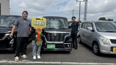 この度はスペーシアカスタムご購入いただき誠に有難うございました。 今回は初めてのお車をご検討の中で、ご相談をいただきました。 数ある車両の中からお選びいただいたのが、こちらのスペーシアカスタム。 高年式・低走行、高グレードの非常に貴重な在庫車両をオススメさせていただきました。 オーナー様のカーライフがより良いものとなられる事を心より願っております。 点検や車検など今後のメンテナンスもサポート致しますので、 末永いお付き合いをどうぞよろしくお願いいたします。