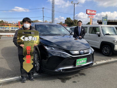 この度はハリアーHVをご成約頂きまして、誠にありがとうございます。 今回は、増車でご来店頂きました。 その中でも気に入って頂いたのがこちらのハリアーHVです。 新しい型のハイブリッド車を探されてらっしゃており、 この上ない1台をご契約頂きました。 ご納車の際には、綺麗に仕上がったお車をお喜び頂きました。 今後ともお客様のカーライフをしっかりとサポートさせて頂きます。 末永いお付き合い宜しくお願い致します。