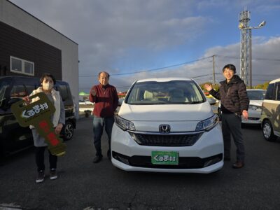 この度はフリードご成約いただき誠にありがとうございます。 今回はお乗り換えをご検討の中、ご来店いただきました。 燃費とスライドドアの利便性を気に入っていただきました。 お客様のご希望の条件に合ったお車をご案内でき嬉しく思います。 これから色々なところにドライブを楽しんでいただけたらと思います。 お客様のカーライフを精一杯サポートさせていただきますので 今後とも末永いお付き合い、宜しくお願い致します。