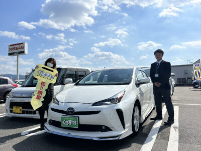 この度はプリウスをご成約いただき誠にありがとうございます。 以前も当店をご利用いただいているお客様になります。 お乗り換えのご検討をされており、維持費を抑えてお車に乗りたいとのことで こちらのプリウスをお勧めさせて頂きました。 装備や、走行性能が良いのはもちろん、エアロついているということで、 見た目に関しましても、大変満足頂きました。 納車の際には、綺麗に仕上がったお車を大変気に入って頂き、 私も嬉しく思います。 末永いお付き合いを宜しくお願い致します。