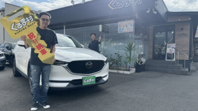この度はCX-5ご購入いただき誠に有難うございました。 当社を長年ご愛顧いただいていたお客様になります。 今回はお乗り換えをご検討の中でお話をいただきました。 数ある車両の中からお選びいただいたのが、こちらのCX-5でした。 メンテナンスやコーティングなどアフターサービスまでお任せいただき、大変嬉しく思います。 オーナー様のカーライフがより良いものとなられる事を心より願っております。 点検や車検など今後のメンテナンスもサポート致しますので、 末永いお付き合いをどうぞよろしくお願いいたします。