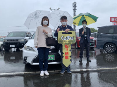 この度はCTご購入いただき誠にありがとうございます。 WEBを見てお問合せにてご来店いただきました。 お目当てのCTをご案内させていただきました。 スピンドルグリルに社外メッキパーツ、社外アルミホイール装備の仕上がったデザインに 一目惚れしていただきました。 納車の際にもCTを見てご夫婦お二人に喜んでいただき 私も大変嬉しく思います。 遠方ではございますが、久留米に来られる機会がございましたら 是非くるま村にお立ち寄り下さい。 本日はCTのご納車おめでとうございます。