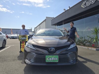 この度はカムリのご契約を頂きまして、誠にありがとうございます。 今回はお乗り換えをご検討でご来店いただきました。 数ある車両の中からお選びいただいたのが、こちらのカムリでした。 今後もお客様のカーライフがより良いものになるよう、 全力でサポートさせて頂きます。 末永いお付き合いの程、宜しくお願い致します。