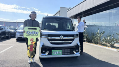 この度はスペーシアカスタムのご契約を頂きまして、誠にありがとうございます。 今回は増車をご検討の中、ご来店いただきました。 当社自慢の新車ズバッとぷらん。 どこよりも安い新車のご案内に大変お喜びいただきました。 今後もお客様のカーライフがより良いものになるよう、 全力でサポートさせて頂きます。 末永いお付き合いの程、宜しくお願い致します。