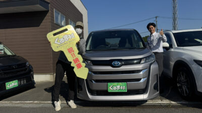 この度はノアのご契約を頂きまして、誠にありがとうございます。 今回は遠方よりお問い合わせをいただき、ご案内させていただきました。 数ある車両の中からお選びいただいたのが、こちらのノアでした。 非常に貴重な現行ノア。大変お喜びいただきました。 今後もお客様のカーライフがより良いものになるよう、 全力でサポートさせて頂きます。 末永いお付き合いの程、宜しくお願い致します。