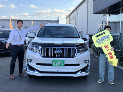 この度はプラドご成約いただき誠にありがとうございます。 数ある車両の中からお選びいただいたのがこちらのプラド。 新しいお車でたくさん思い出を作っていただけたらと思います。 お客様のカーライフがより良いものとなりますよう 社員一同、全力でサポートさせていただきます。 今後とも末永いお付き合い、宜しくお願い致します。