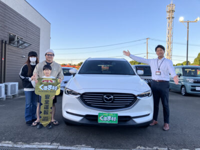 この度はCX-8のご契約を頂きまして、誠にありがとうございます。 今回はお乗り換えをご検討でご来店いただきました。 数ある車両の中からお選びいただいたのが、こちらのCX-8でした。 今後もお客様のカーライフがより良いものになるよう、 全力でサポートさせて頂きます。 末永いお付き合いの程、宜しくお願い致します。